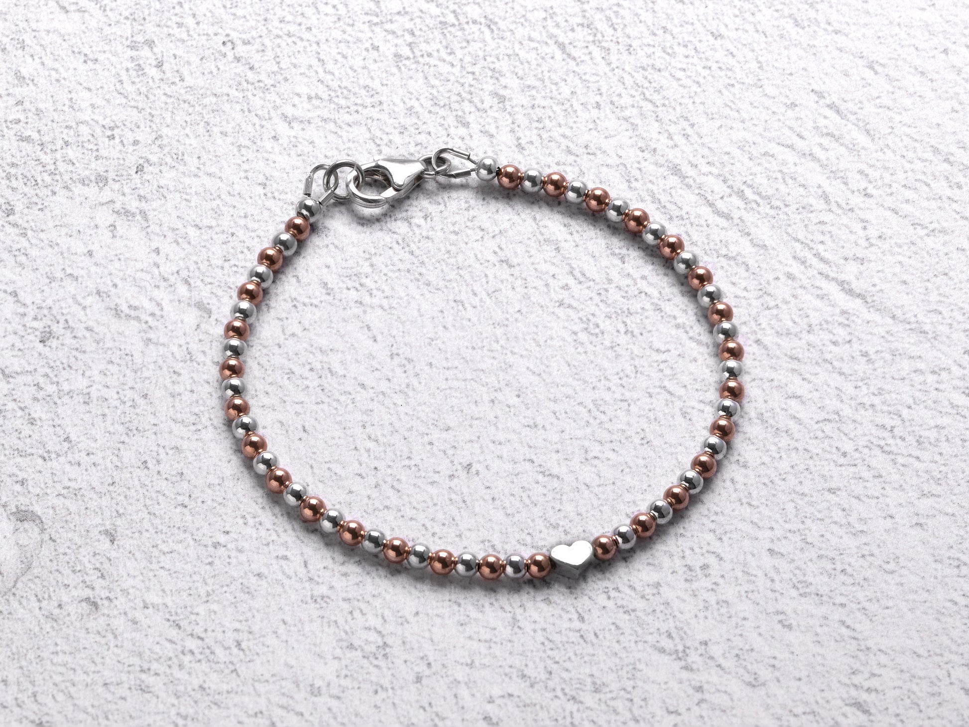 Silver Bead Bracelet with Heart Charm